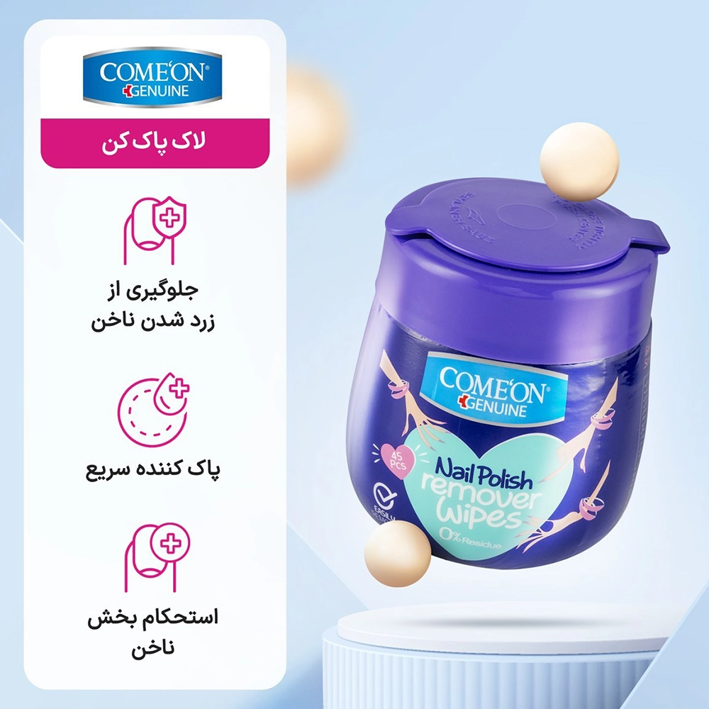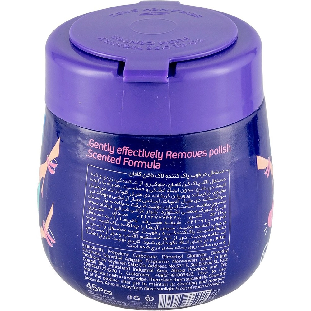 دستمال مرطوب لاک پاک کن کامان بسته ۴۵ عددی